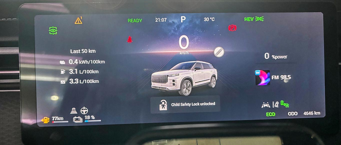 No desafio, o J7 PHEV atingiu uma autonomia máxima combinada de 1.353 km sem reabastecimento adicional. Durante o período de teste, o J7 PHEV atingiu um consumo de combustível notável de apenas 3,3 litros por 100 quilômetros em um estado esgotado, que é 2,6 litros menor do que os 5,99 litros nominais, demonstrando eficiência de combustível excepcional. Isso serve como prova da funcionalidade dupla do veículo. Ao embarcar em viagens longas ou em situações com opções de carregamento limitadas, ele pode ser utilizado como um veículo movido a combustível, oferecendo grande conveniência. Neste contexto, o J7 PHEV ostenta uma taxa de consumo de combustível ultraeconômica, tornando-o uma escolha ideal para viagens modernas de nova energia.